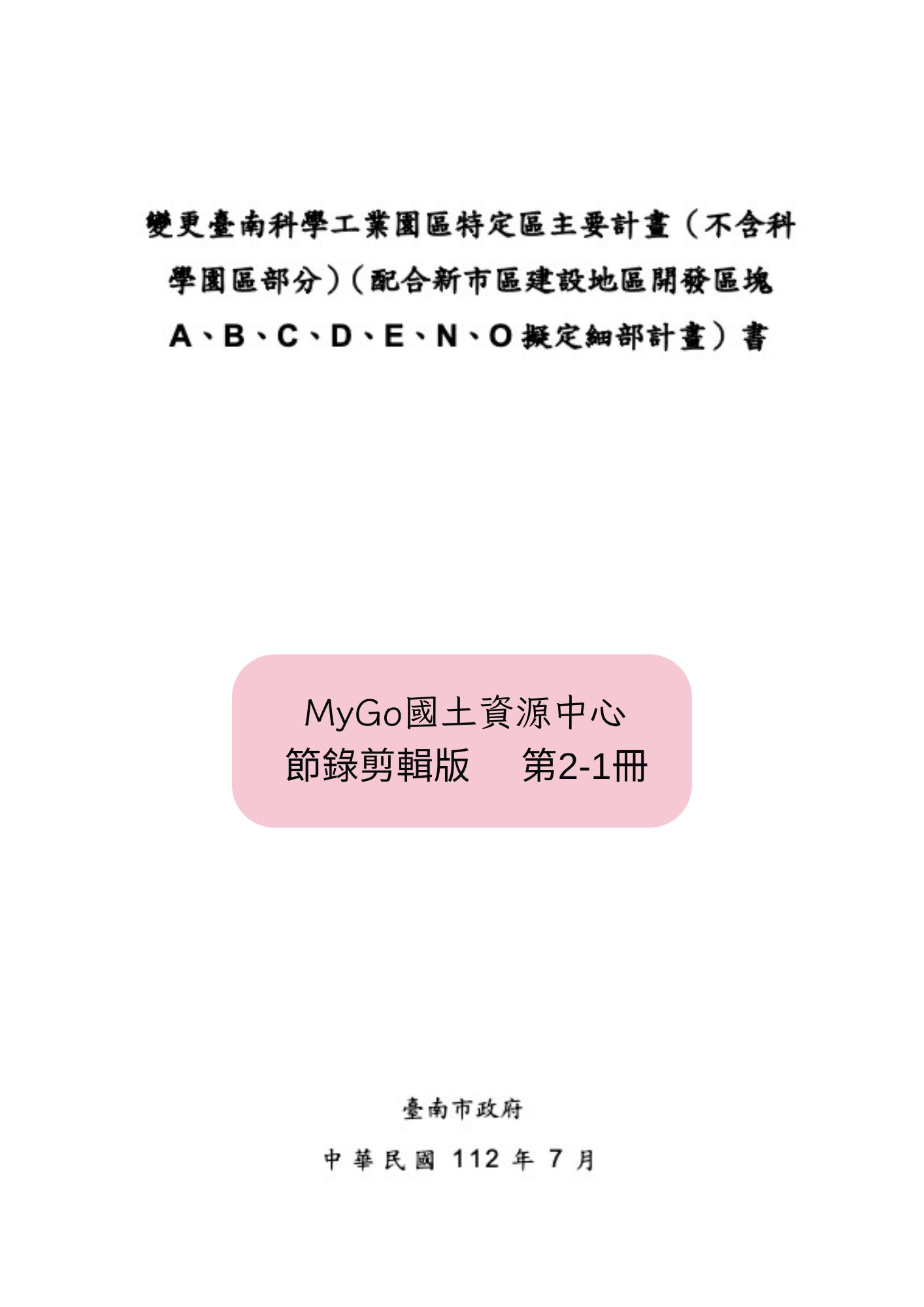 ●原臺南縣政府推動總面積達3,282.92公頃的「擬定臺南科學工業園區特定區計畫」(以下簡稱「特定區」),然為加速提供進駐廠商設廠土地,經內政部都委會同意,於90年12月針對園區部分先行發布實施,園區以外地區,則於91年11月發布實施。