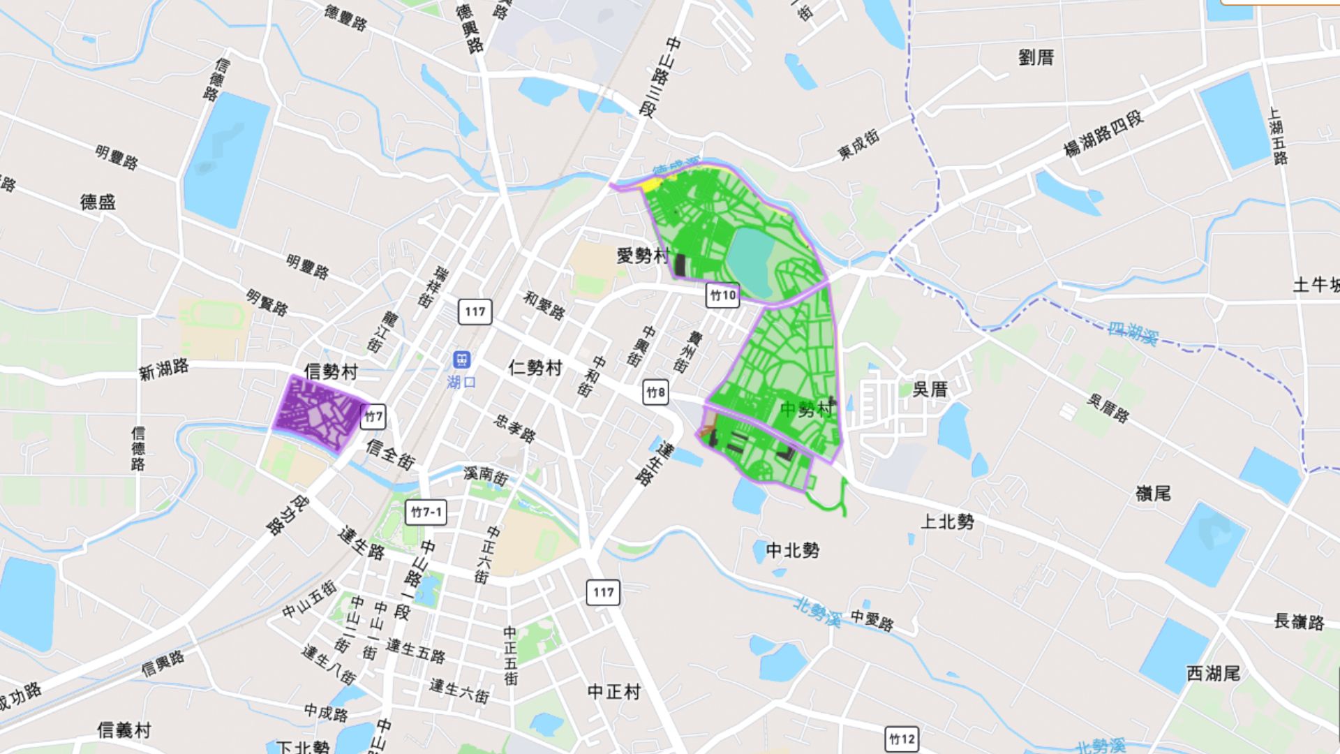 ●湖口都市計畫區係以湖口鄉公所在地之鄉街為中心,範圍以現有湖口火車站為中心,包括鐵路東西兩面主要聚落及外圍農業區,涵蓋仁勢、孝勢、愛勢、中勢、信勢、中正、信義及德盛等8 村,計畫面積約370.00公頃。