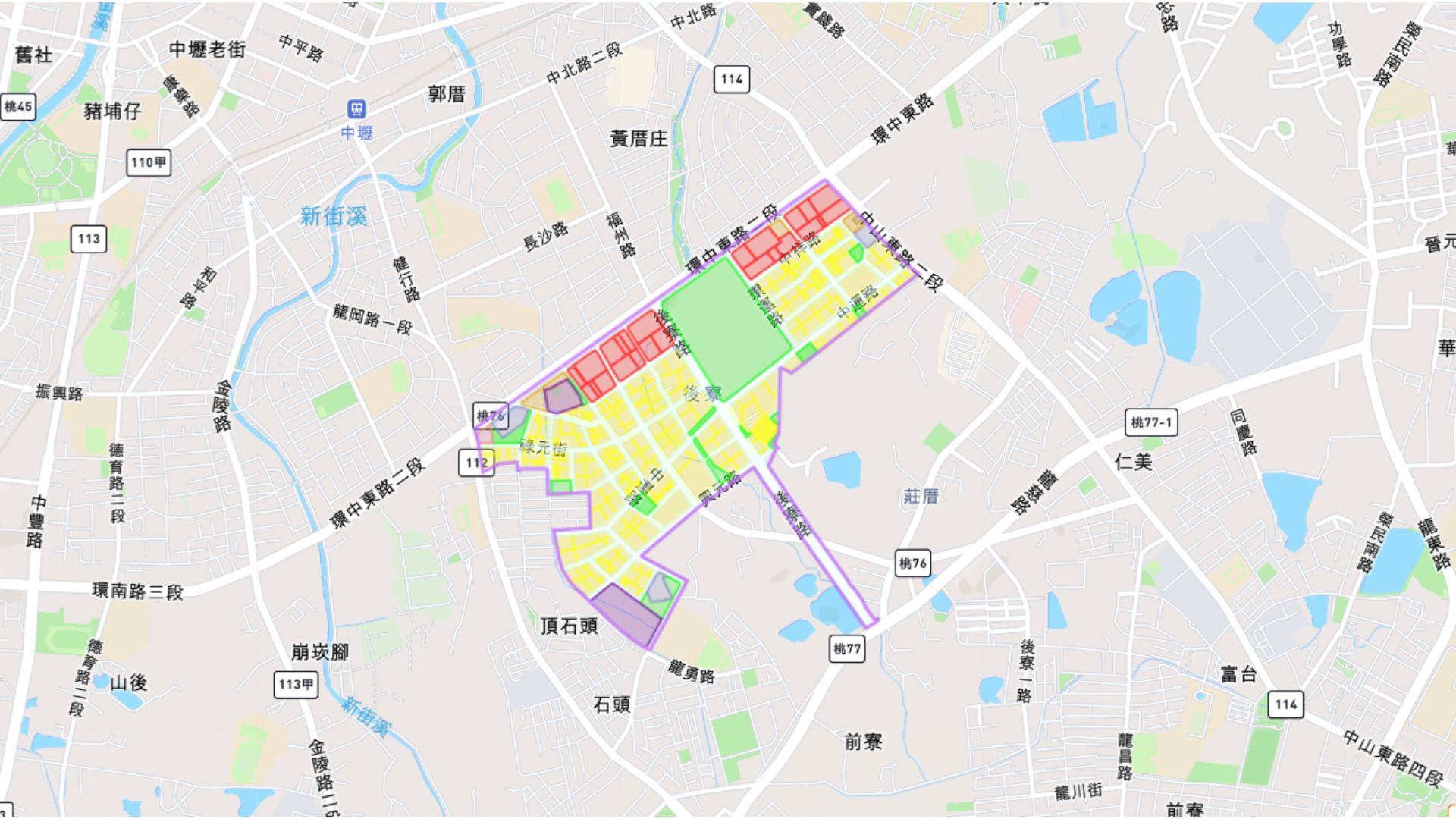 ●其中中壢(龍岡地區)都市計畫區所佔面積約50.53公頃(佔68.10%),中壢平鎮都市計畫區面積則為23.67 公頃(佔31.90%)。