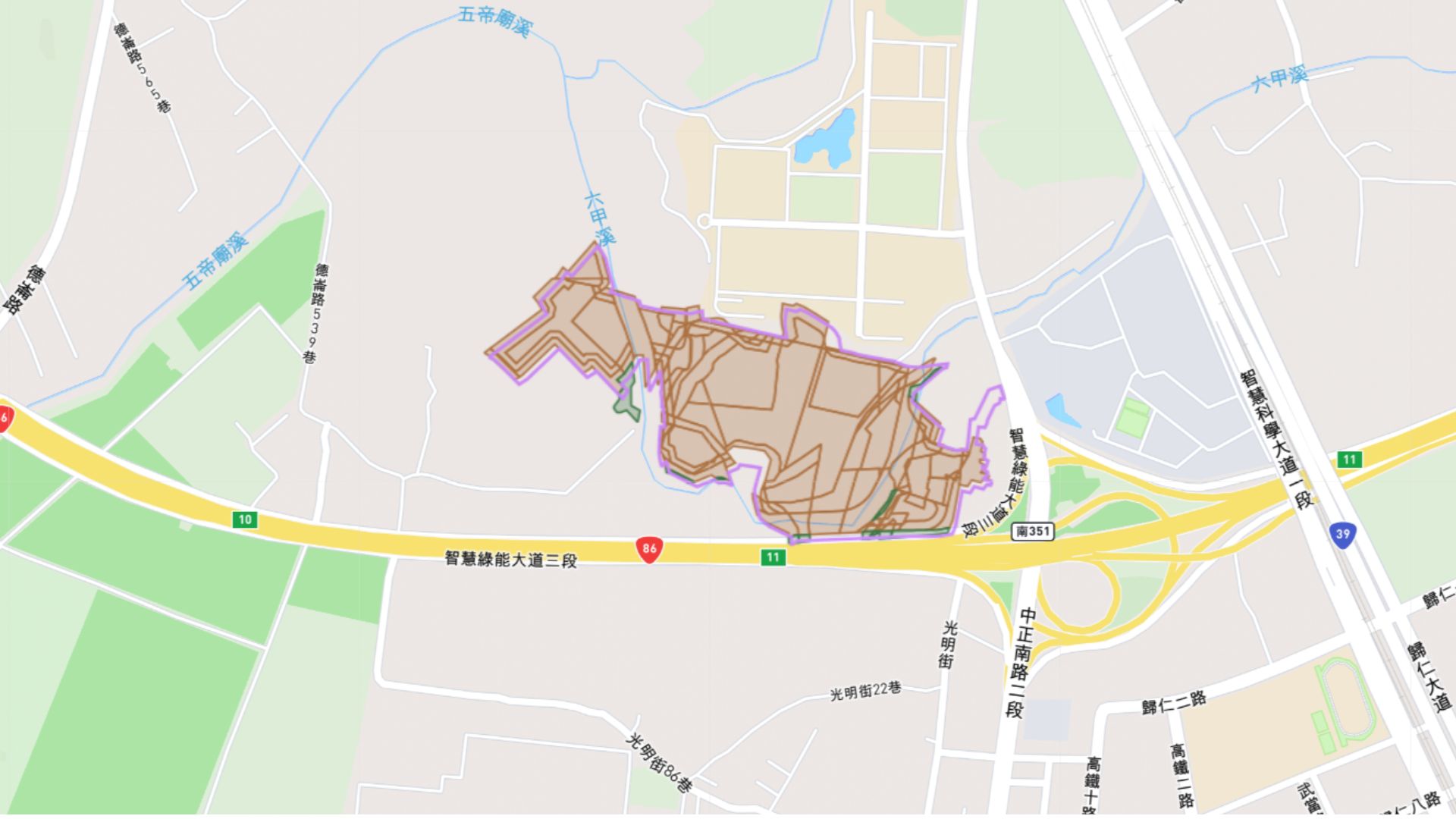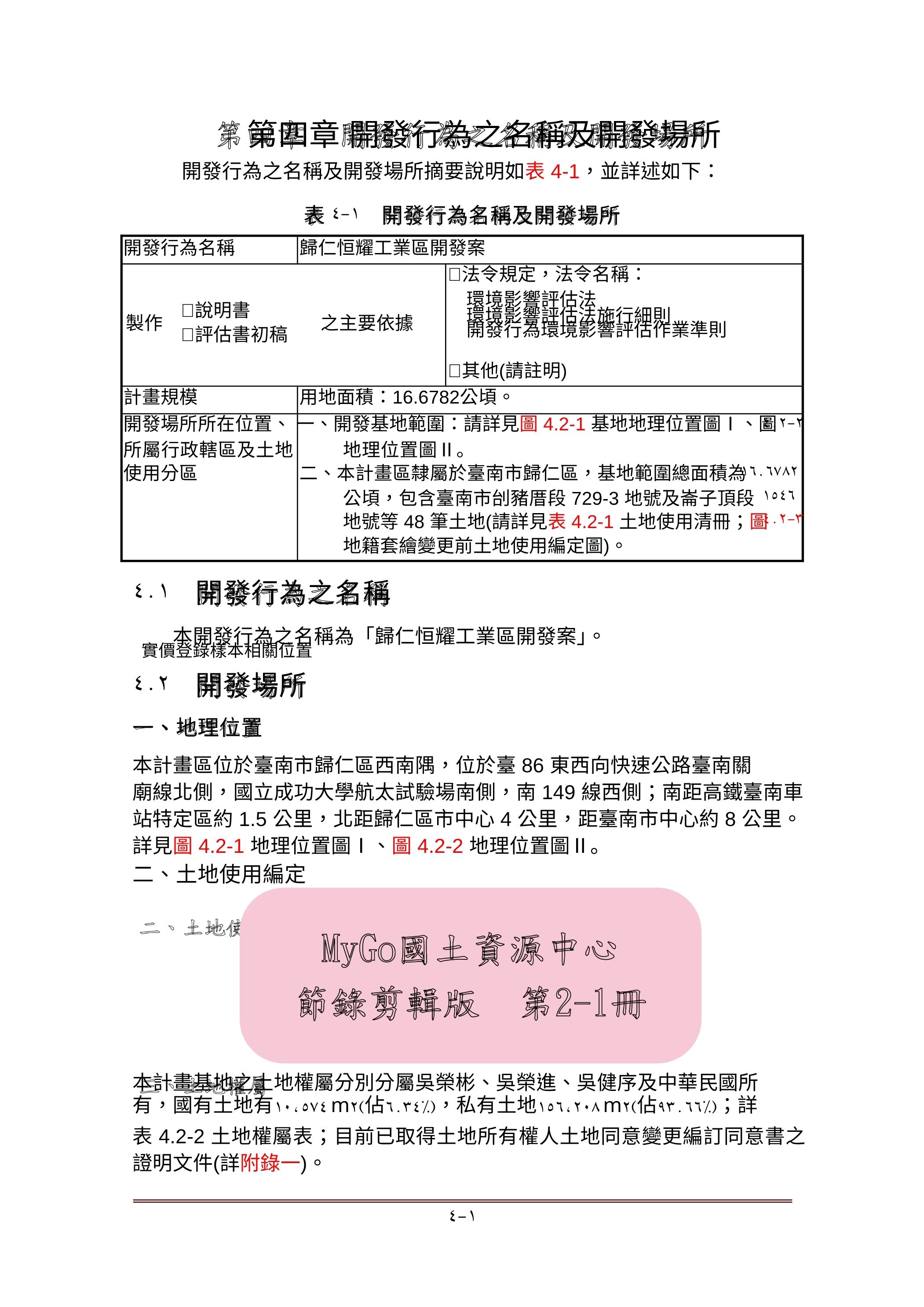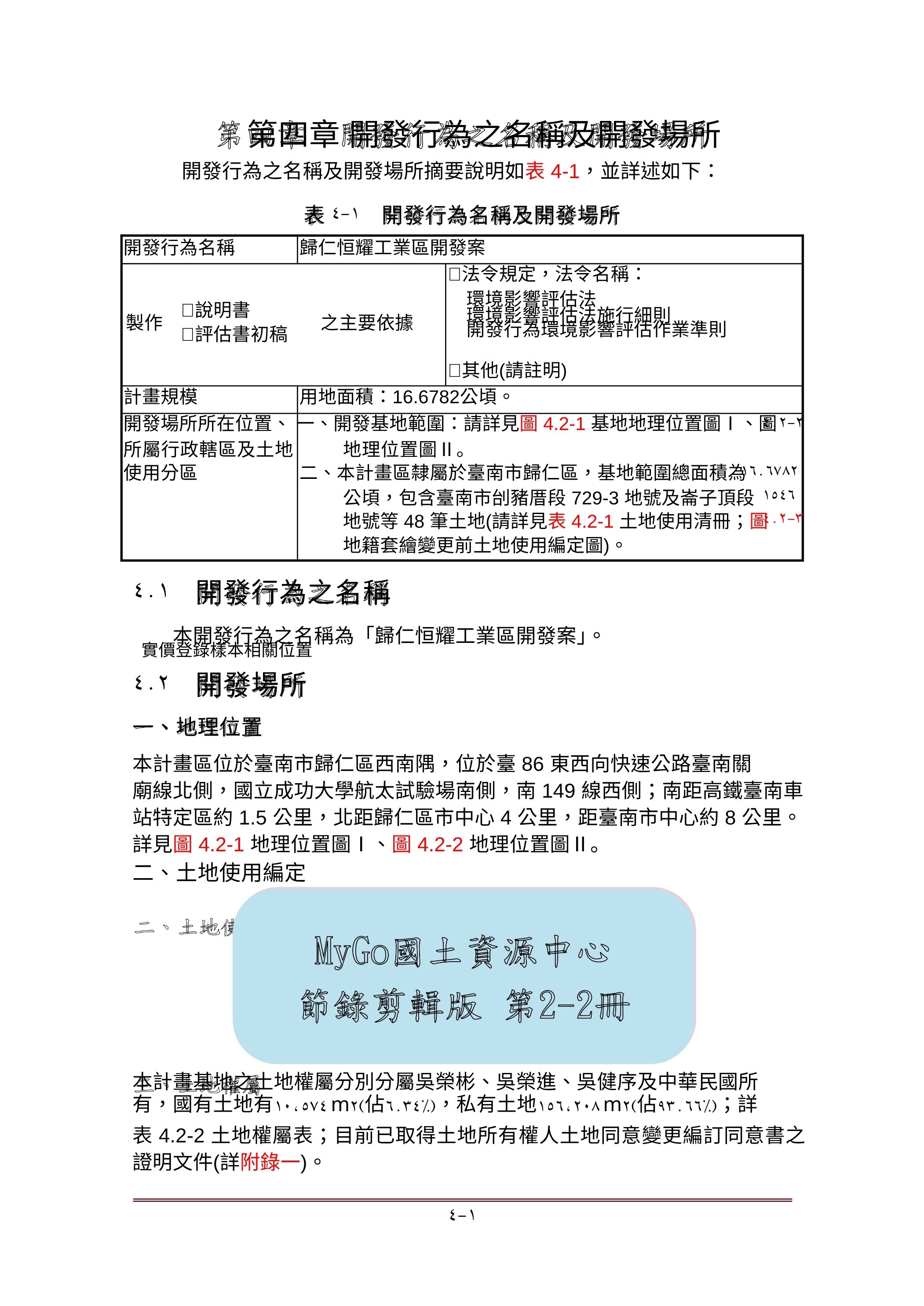 ●計畫區屬於臺南市歸仁區,基地範圍總面積為16.6782公頃,包含臺南市刣猪厝段729-3 地號及崙子頂段1546地號等48筆土地。