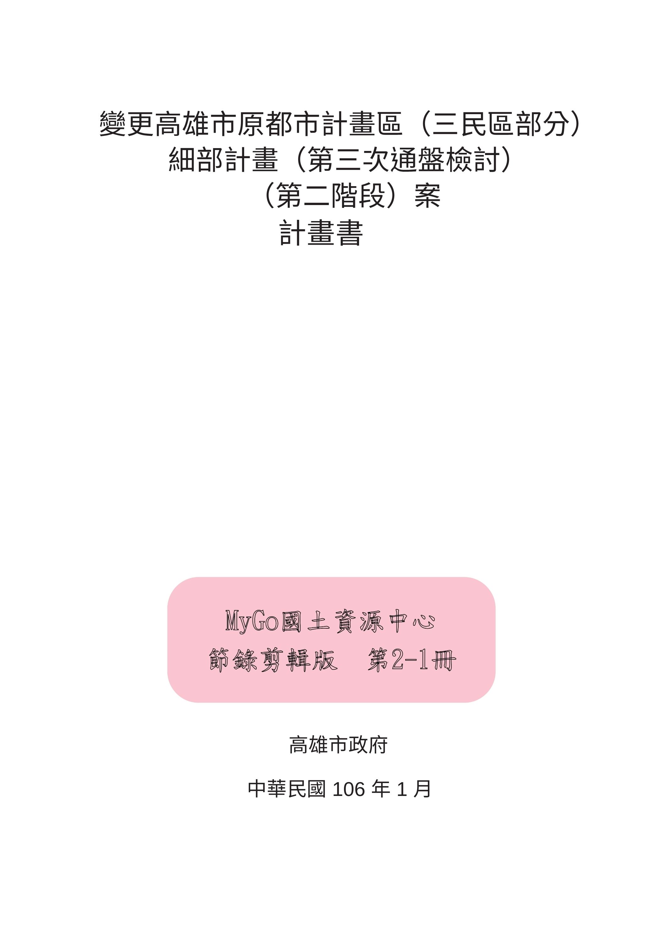 ●高雄都會區大眾捷運系統紅橘線、高鐵、高雄環狀輕軌捷運建設及高雄市區鐵路地下化計畫等,而三民區部分細部計畫區係屬原高雄市中心商業發展重點地區,為原高雄市交通中樞,高雄都會區內多項重大交通及建設計畫均行經本計畫區或與本計畫區相鄰,且因應高雄縣市合併,實有必要配合整體空間結構之改變,適當調整原計畫內容以符都市發展之實際需要。