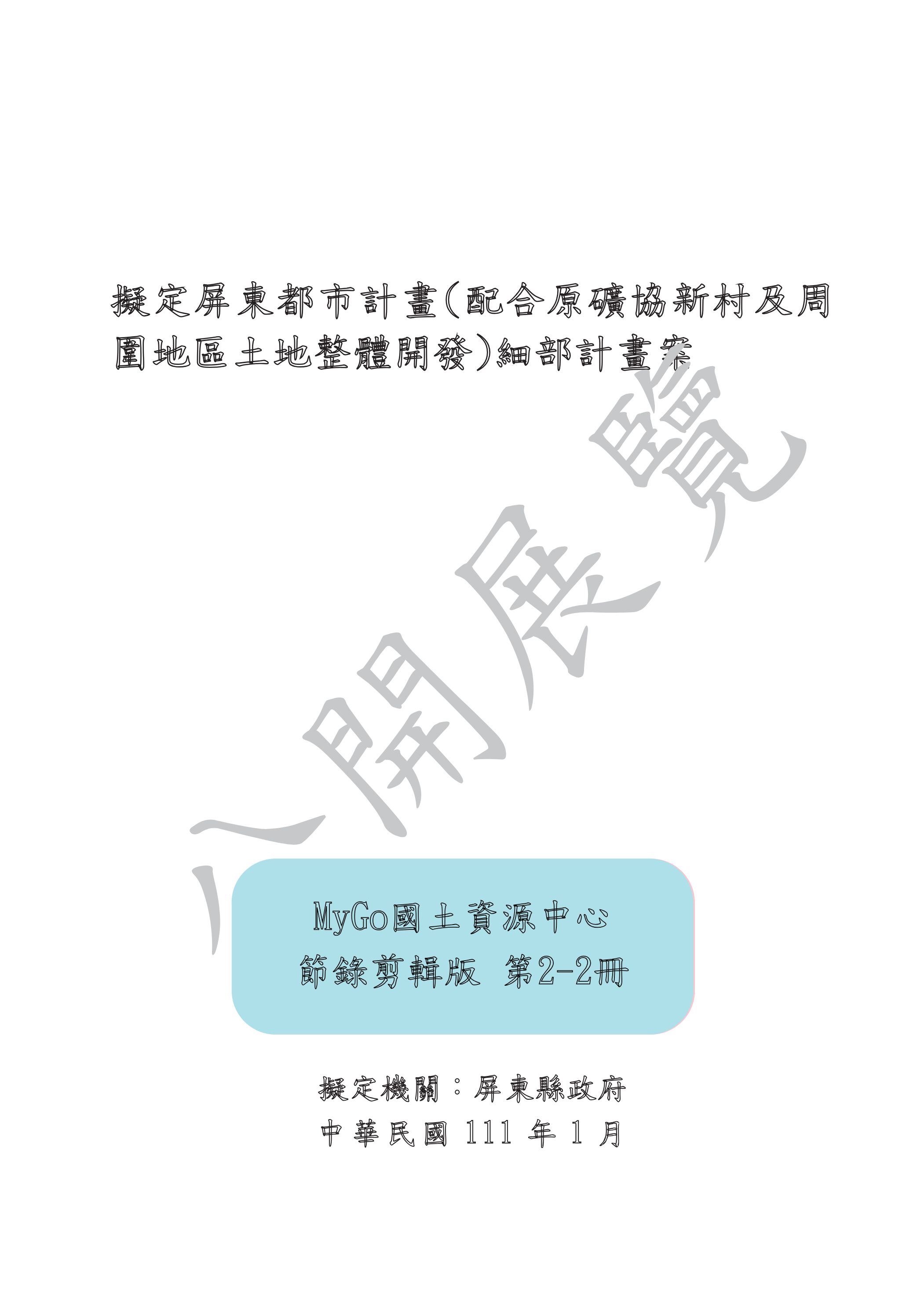●屏東都市計畫於民國2年(日據時期)發布實施,民國50年間開始辦理擴大都市計畫。本計畫區主要區域為國防部進行眷村搬遷改建計畫釋出之礦協東西村土地,原礦協東西村已遷移,土地權屬為國防部管有之國有土地,拆遷後至今現況處於閒置尚未開發狀態,與周遭既有住宅社區間少有道路直接連接,皆尚未擬定細部計畫,缺乏計畫道路、公園用地等公共設施。