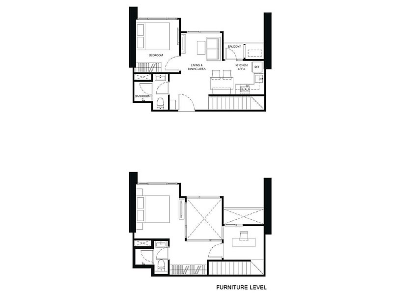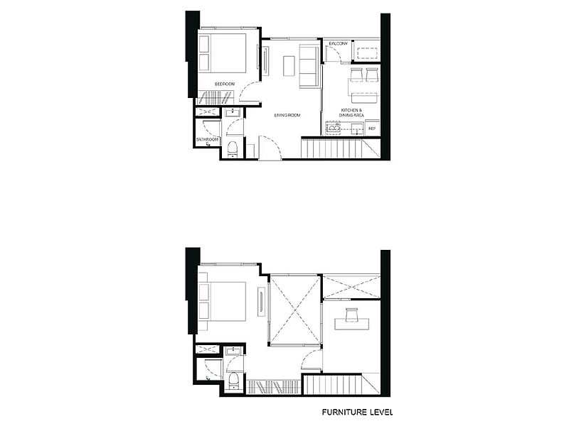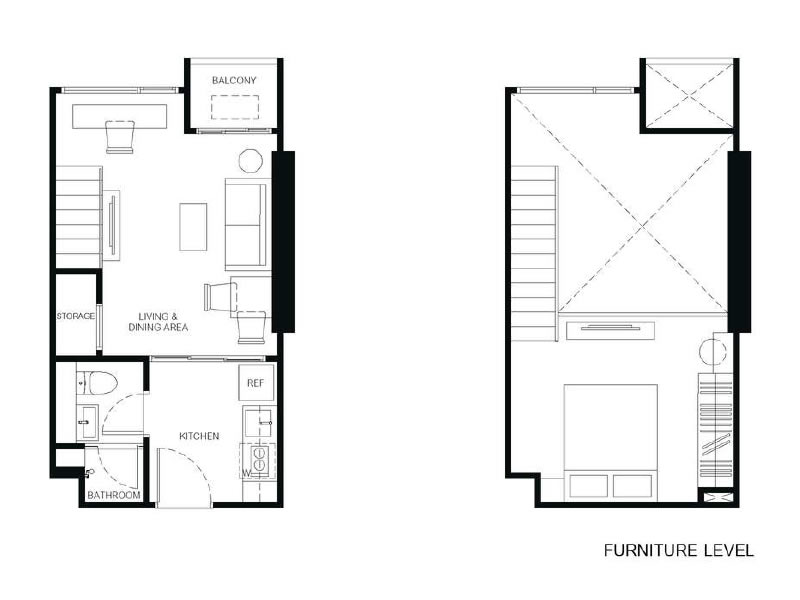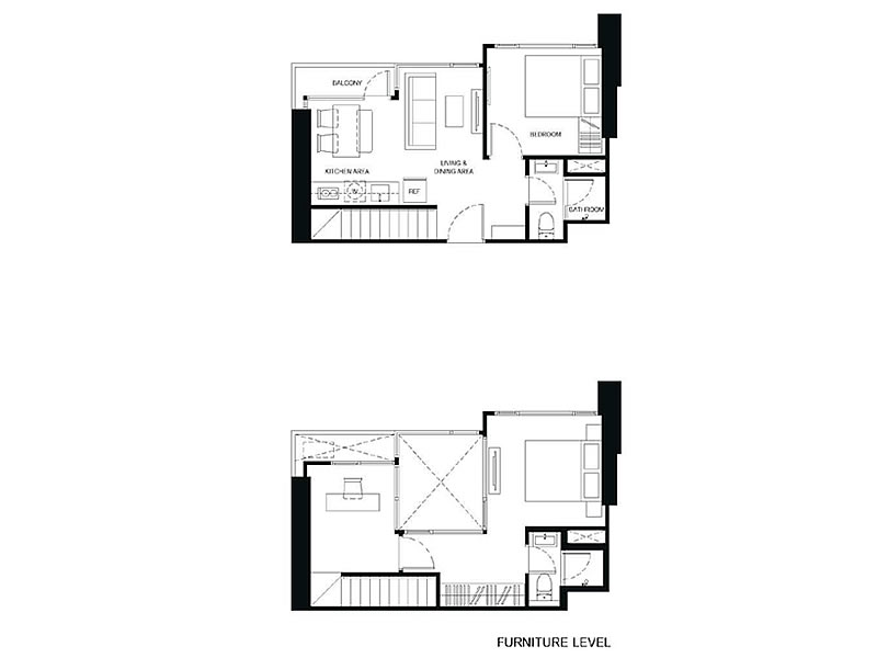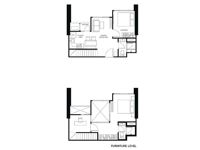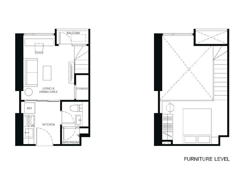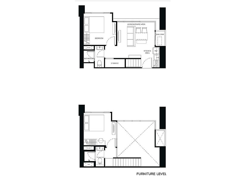 1房1廳1衛 23.75 – 38.75平米(約7.18-11.72坪)樓中樓