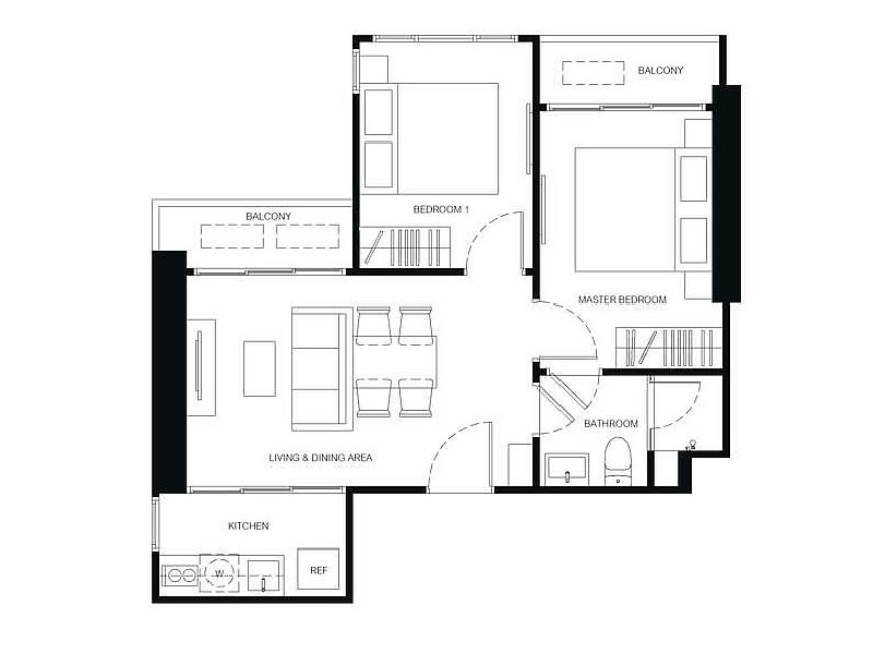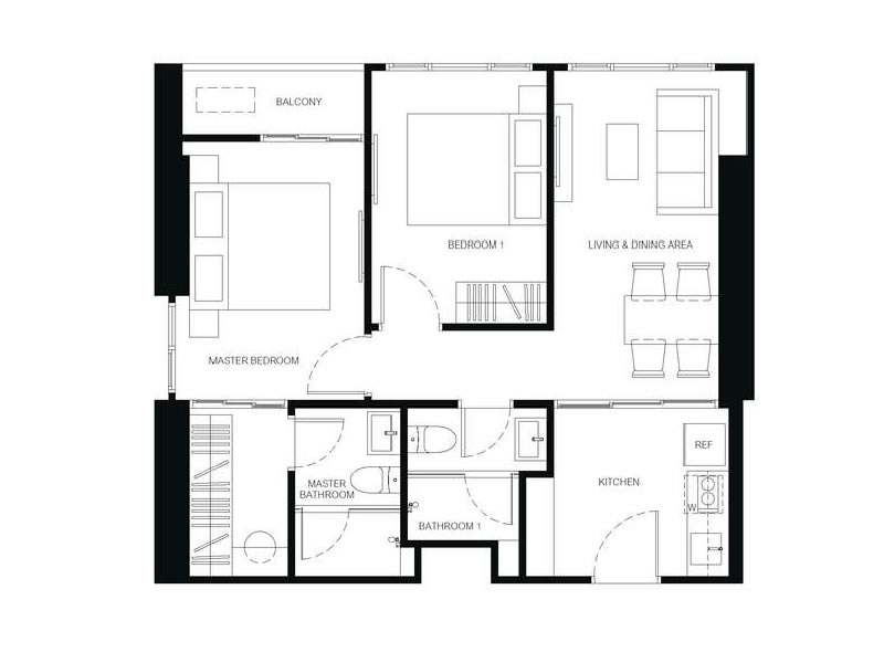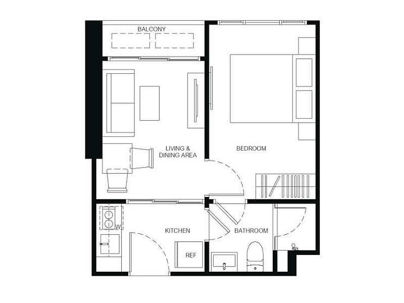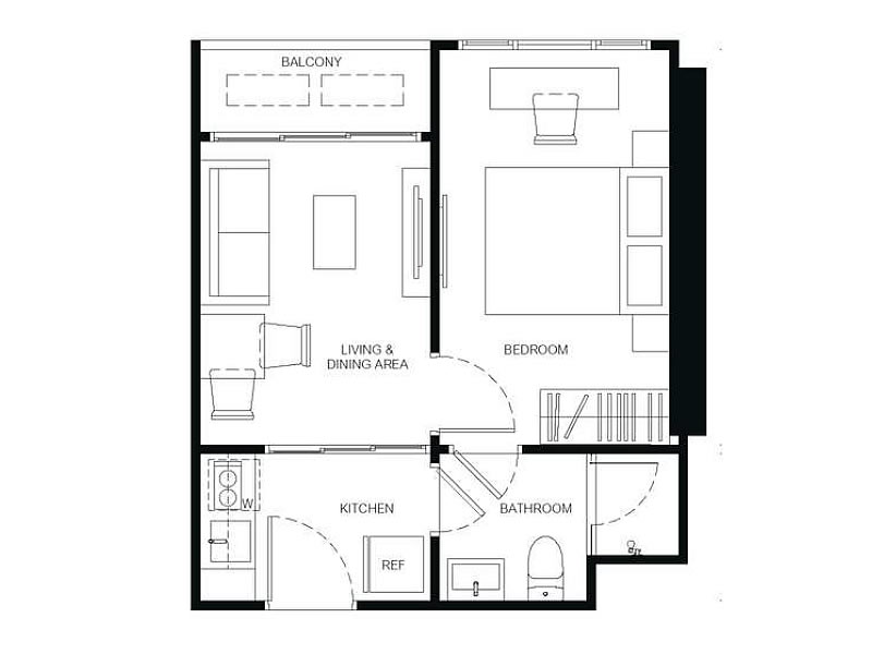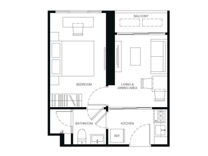 1房1廳1衛 29 – 34.75平米(約8.77-10.51坪)