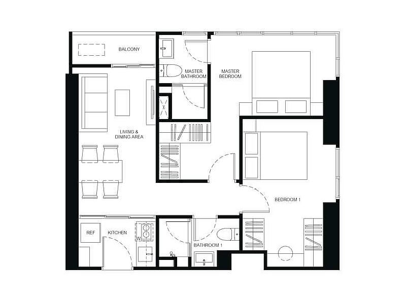 2房1廳2衛 55.50 - 56.25平米(約16.79-17.02坪)