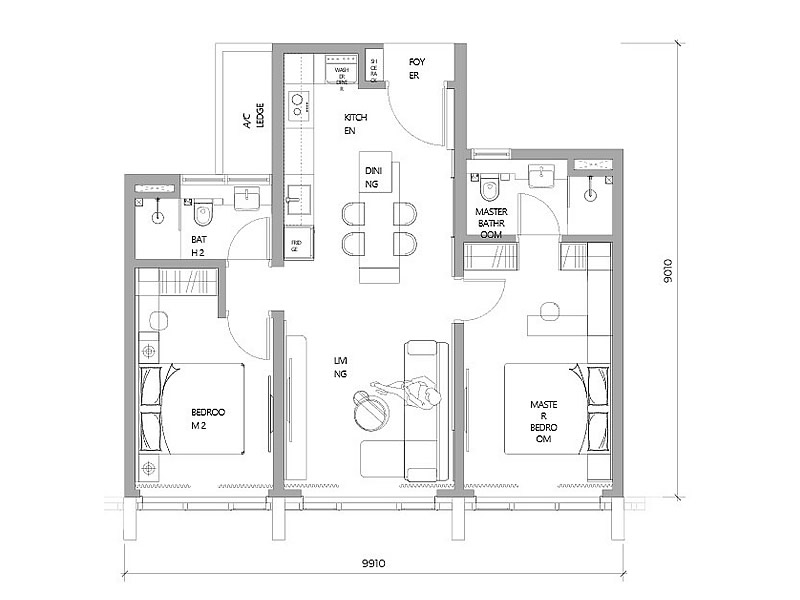 Type A: 797 sq.ft(22.40坪) : 兩房兩衛+1車位
