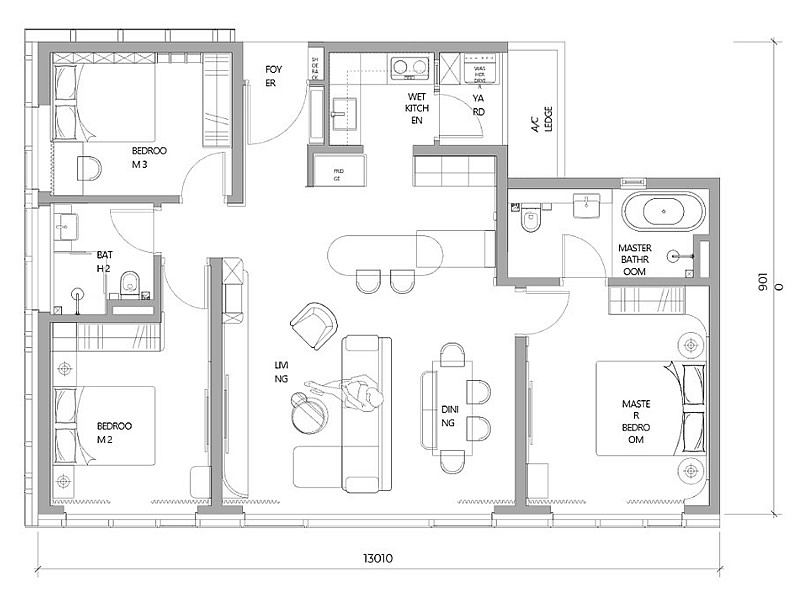 Type C: 1,700 sq.ft(47.77坪) : 四房三衛+2車位