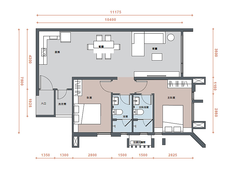 C戶型 2房2衛 23.96 坪 (約852平方英呎)